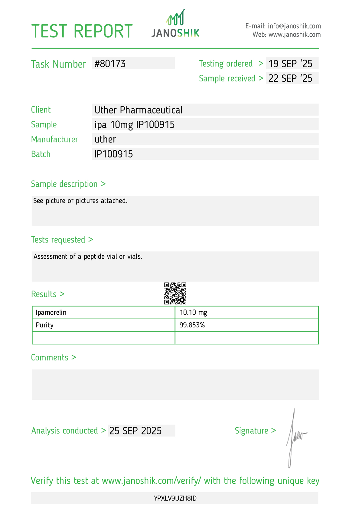 Our materials are supplied for qualified research environments where proper laboratory practices and documentation standards are followed.
