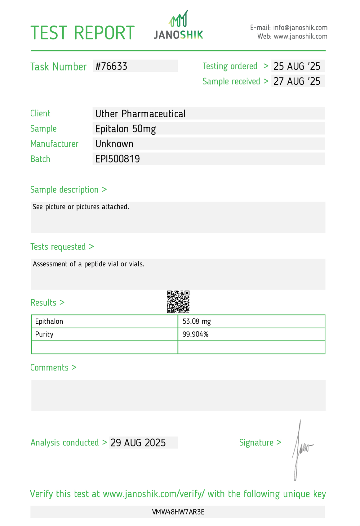Our materials are supplied for qualified research environments where proper laboratory practices and documentation standards are followed.
